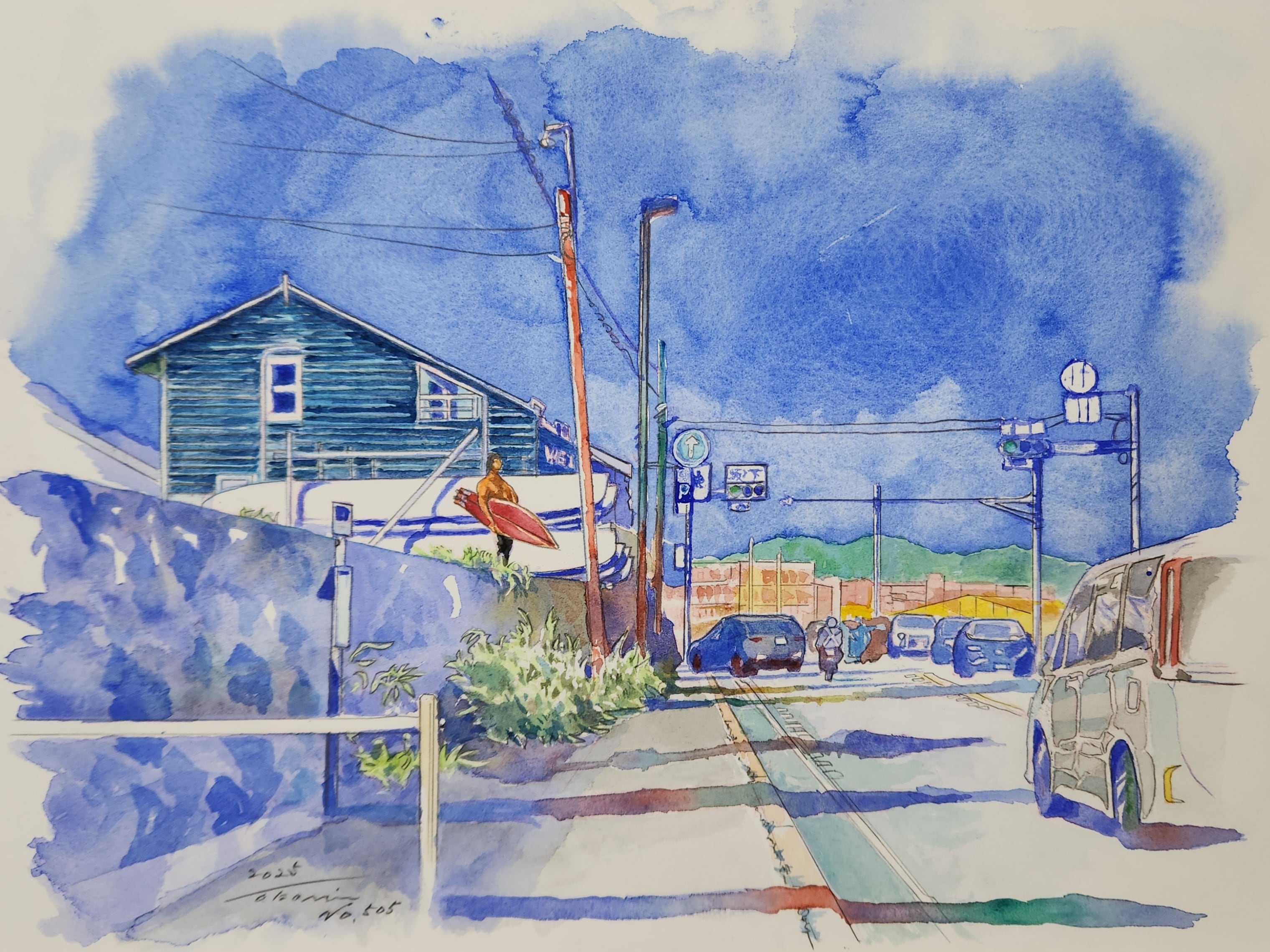 鎌倉坂ノ下交差点にあるサーフショップWETLANDのお店の群青色が気に入って描きました!