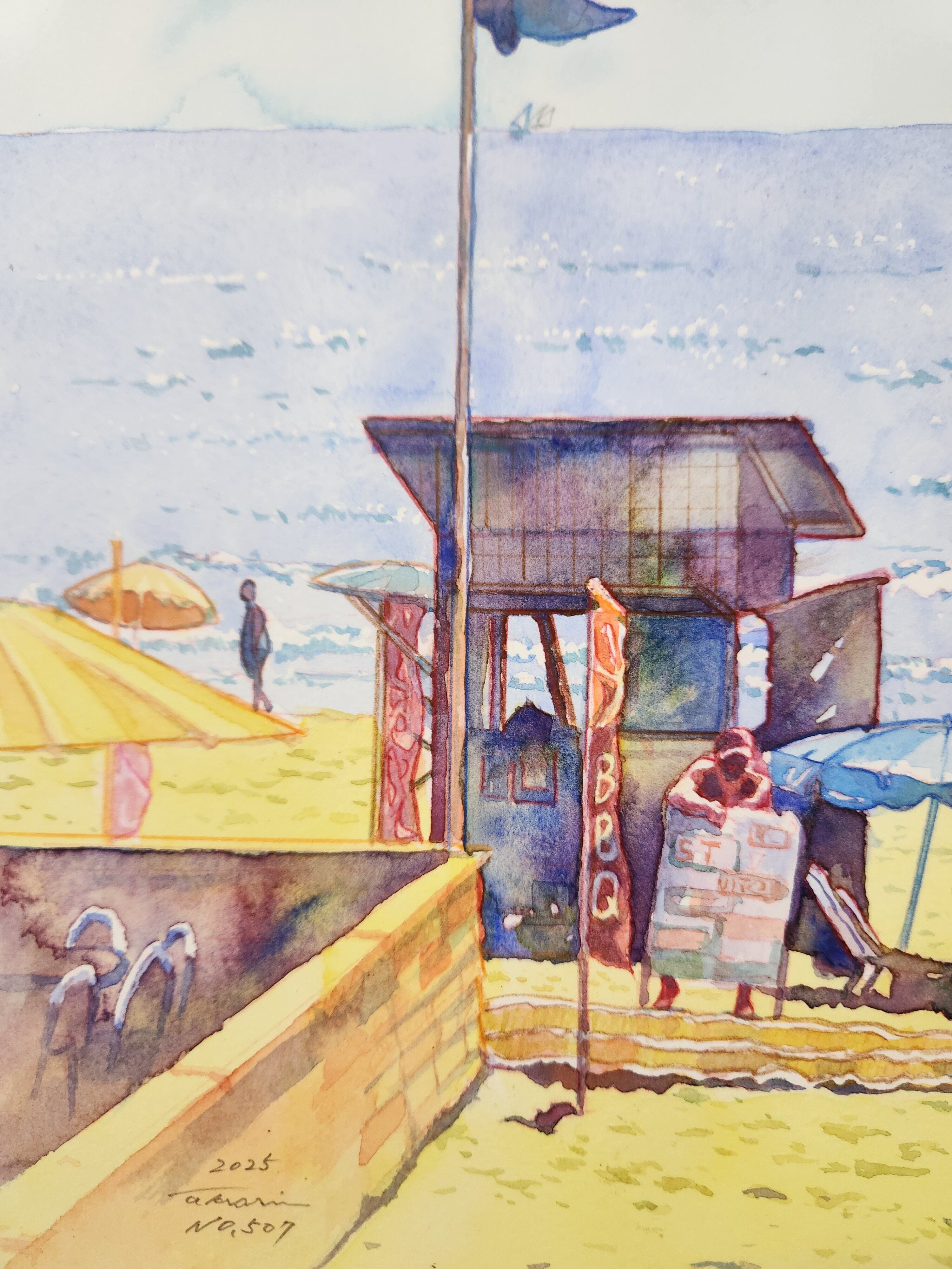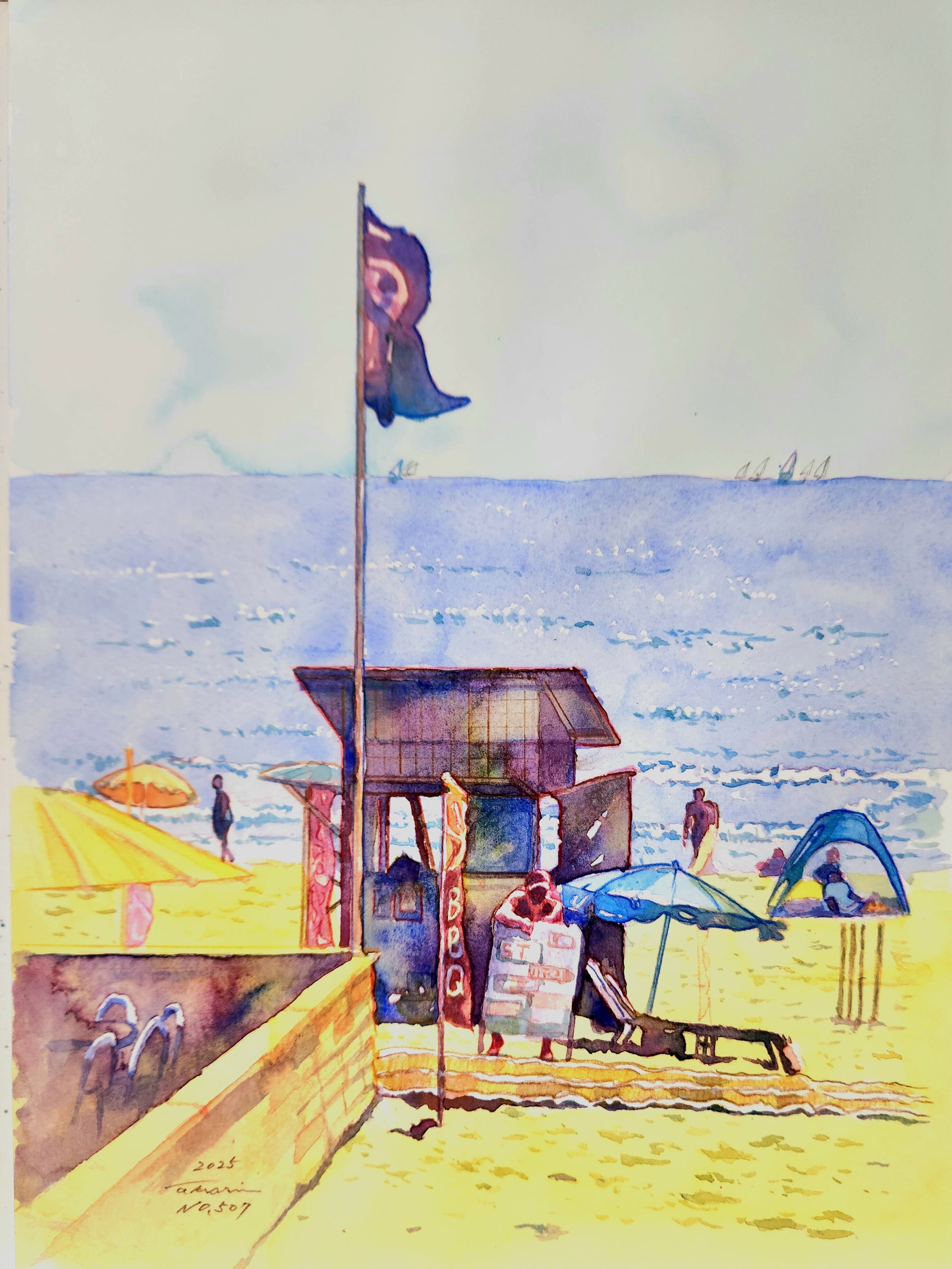 8月の終わり夏休みも終わり日照りはまだまだだが海水浴客が少なくなった由比ヶ浜海岸。海の家の従業員は熱さに負けず呼び込み中。