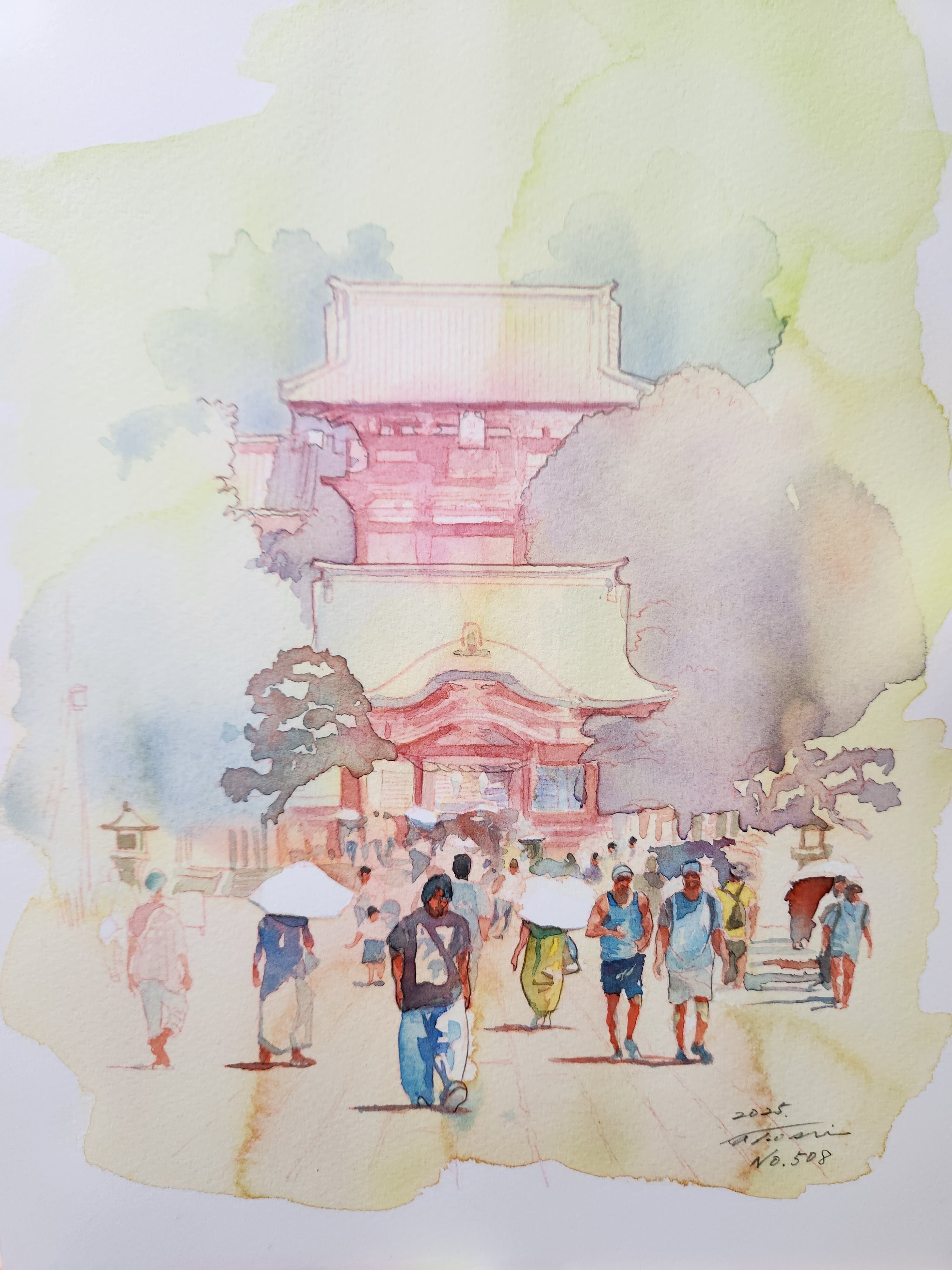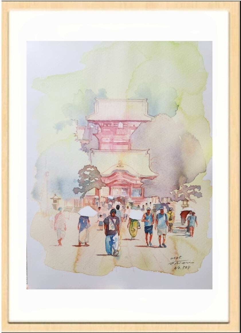 8月終わり頃の鎌倉、鶴岡八幡宮。まだまだ暑さきつい中の参拝。白い日傘がまぶしいです。