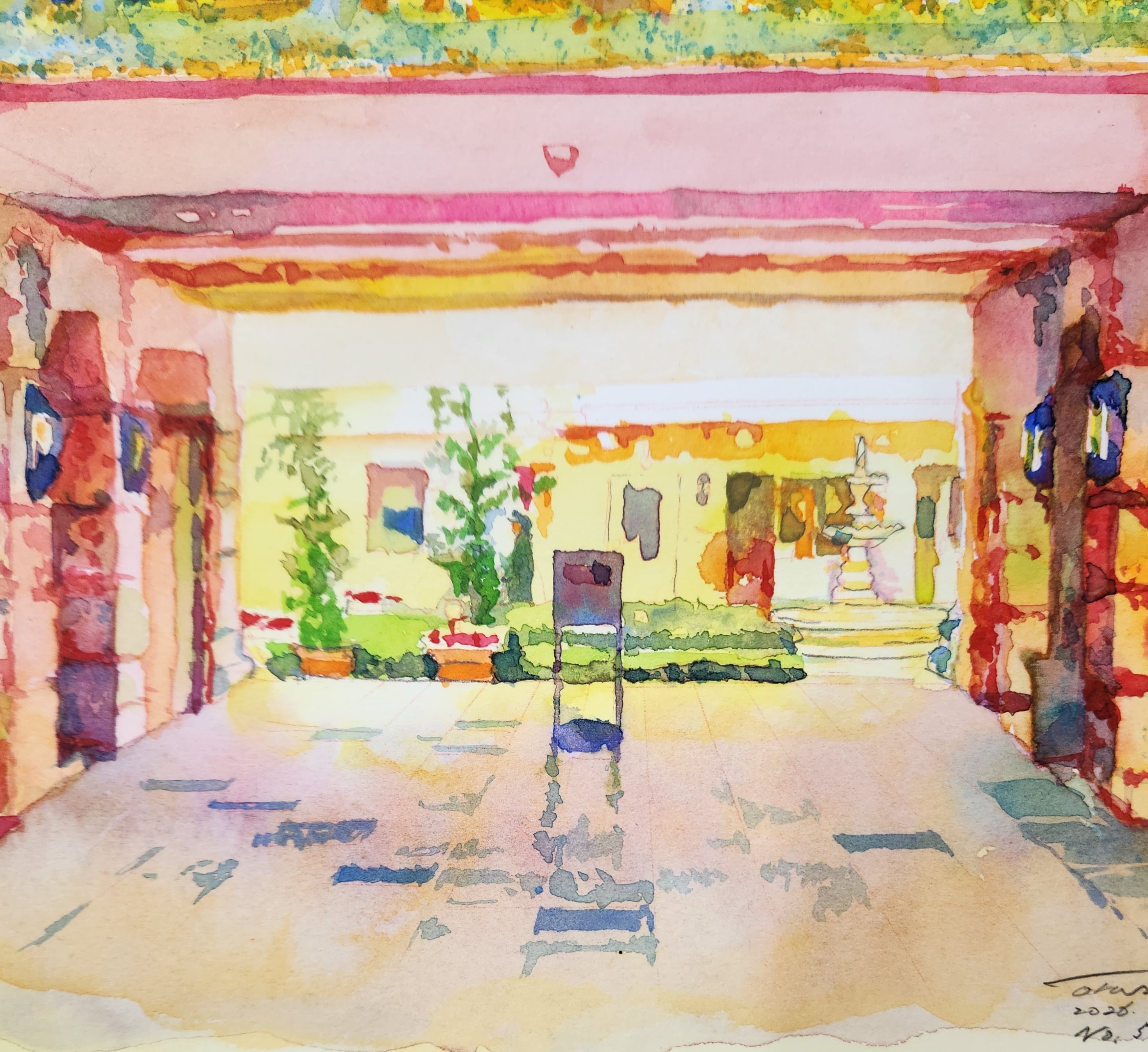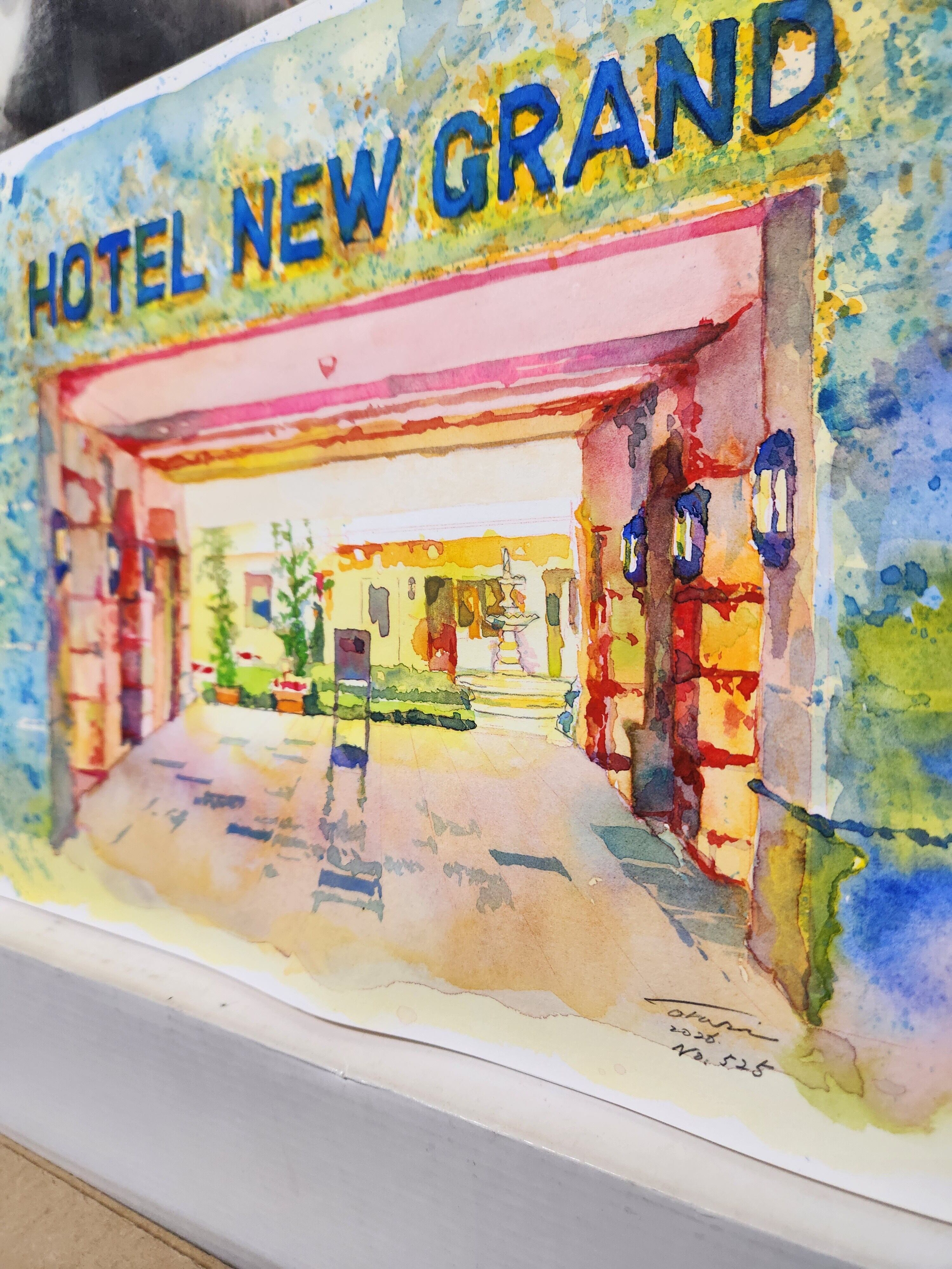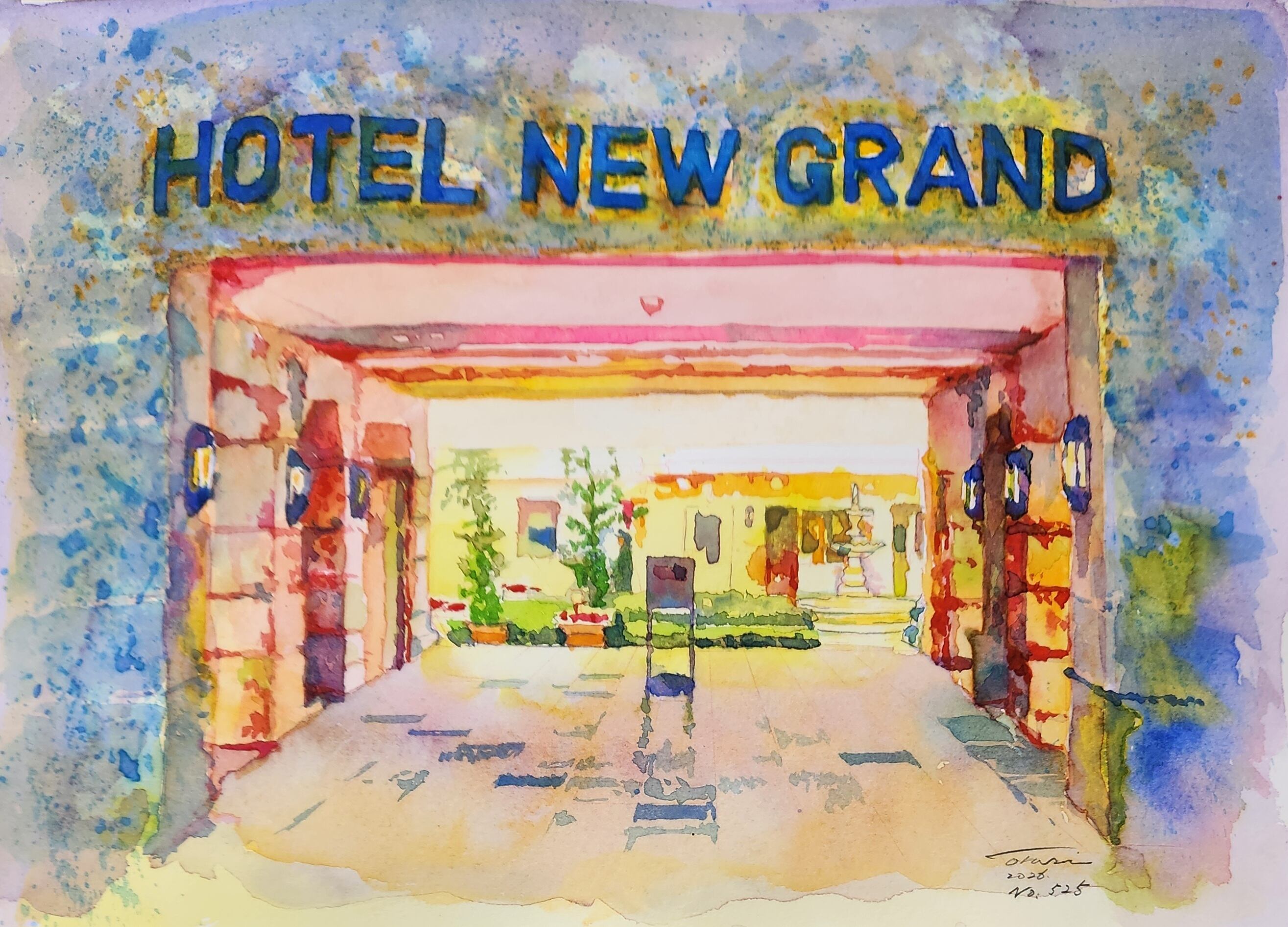 横浜山下公園にある老舗のホテルニューグランドの中庭を裏口から見た風景。