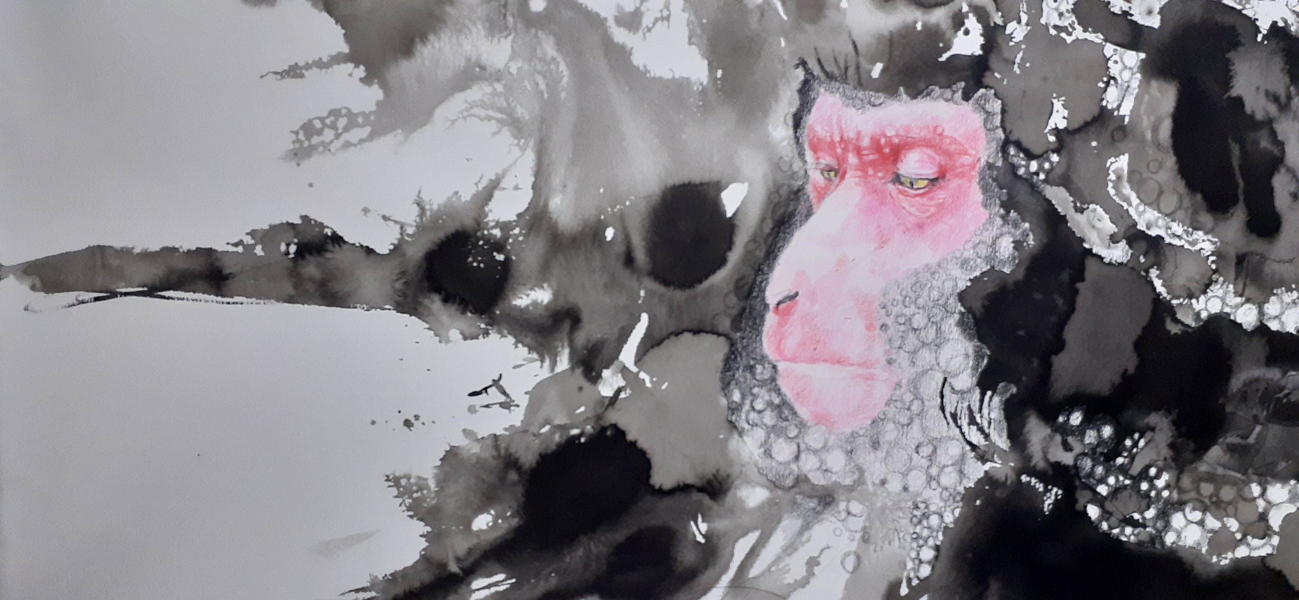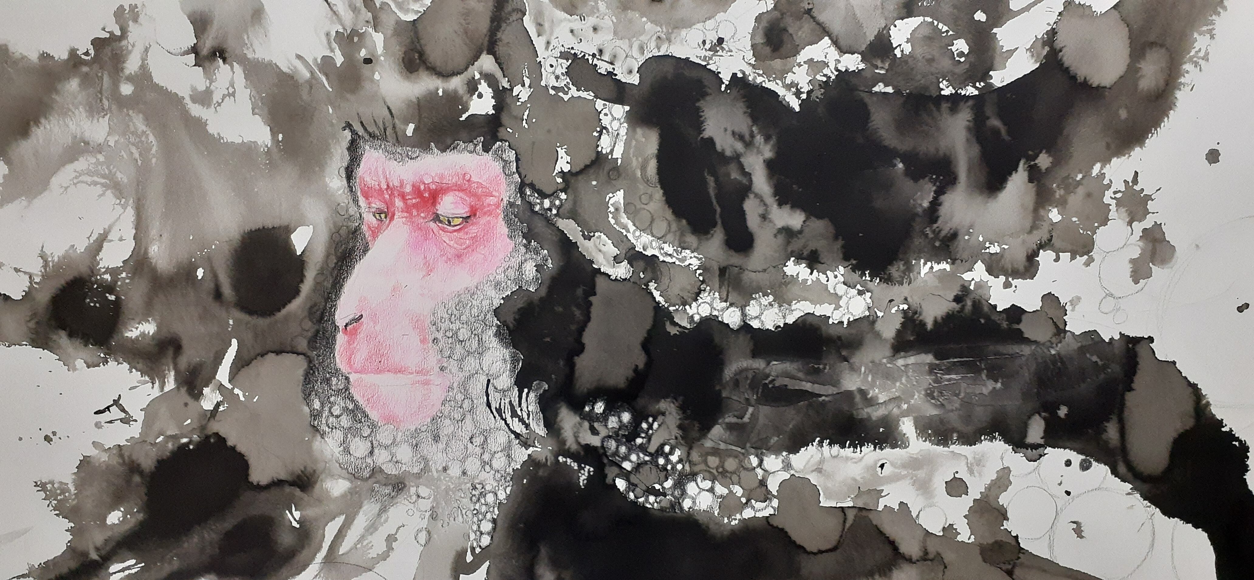 墨、水彩絵の具、色鉛筆、アクリル,使用